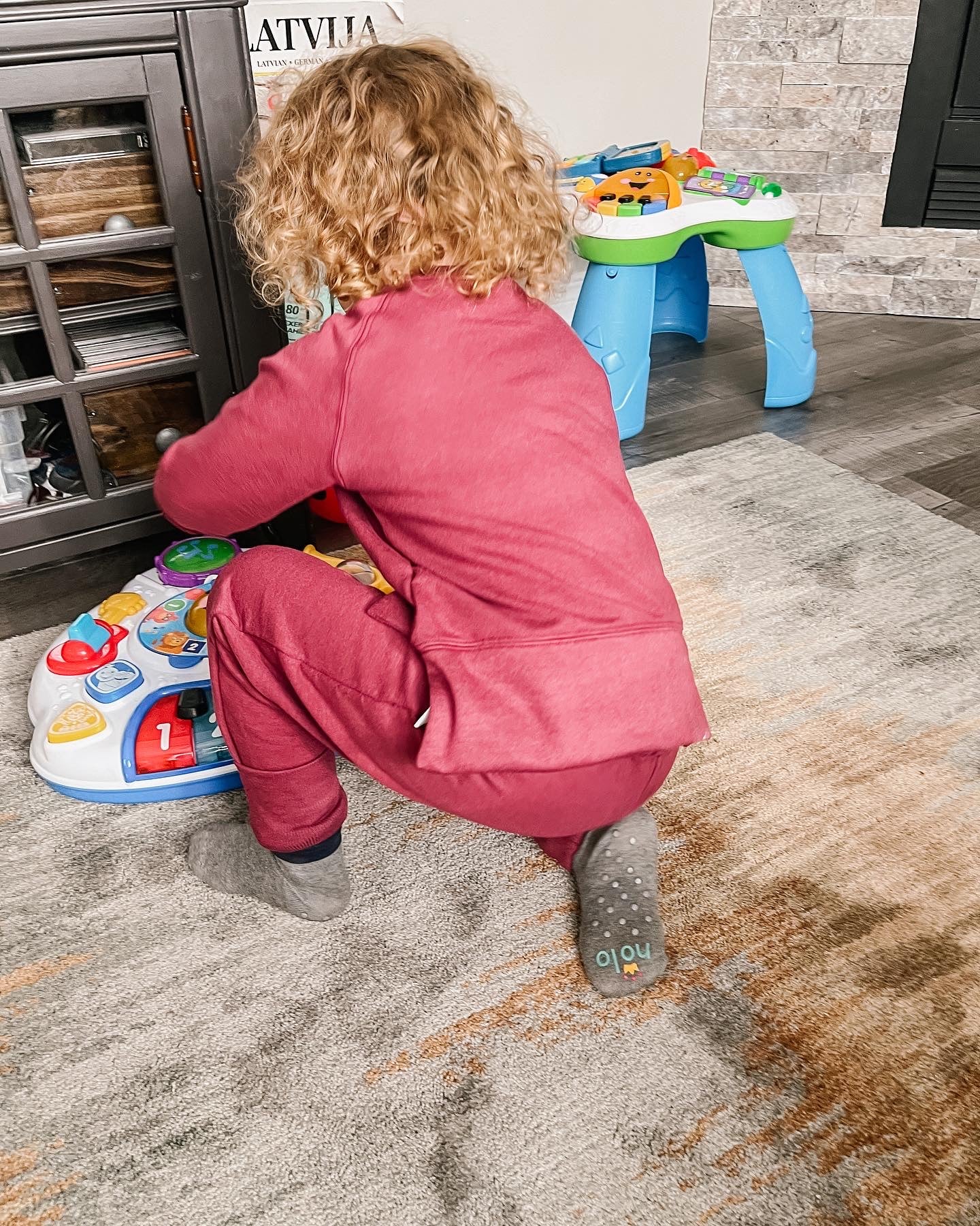 The crewneck sweater from our Toddler Playsuit is thoughtfully designed with comfort, functionality and play in mind.